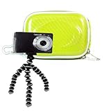 Shiny High Gloss Finish Camera Carrying Zipper Case Nikon Coolpix + 6 inch Tripod, Green Candy