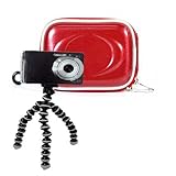 Shiny High Gloss Finish Camera Carrying Zipper Case Nikon Coolpix + 6 inch Tripod, Red Candy