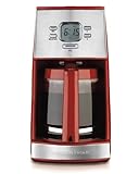 With its sleek contemporary styling, this 12-cup coffeemaker not only looks good on the kitchen counter, but it also provides an array of convenient features. The machine's user-friendly control panel and digital display ensure ease of use, while its programmable clock/timer function allows for waking up to the aroma of freshly brewed coffee. A glass carafe comes included, complete with a stay-cool handle, measuring marks up the side, and a drip-free pour spout. For sneaking a quick cup of coffee midbrew, simply remove the carafe from the machine to pause the flow of coffee, then replace the carafe to continue the brewing process--a nice feature, particularly for those in a hurry for that first sip. Other highlights include a nonstick hot plate, two-hour automatic shut-off for safety and peace of mind, cord storage, and easy-to-clean removable parts. The matching Ensemble toaster, can opener, and blender can be purchased separately for a coordinated look. In bold red with stainless-steel accents, the coffeemaker measures approximately 11 by 8 by 14-inch and carries a one-year limited warranty.